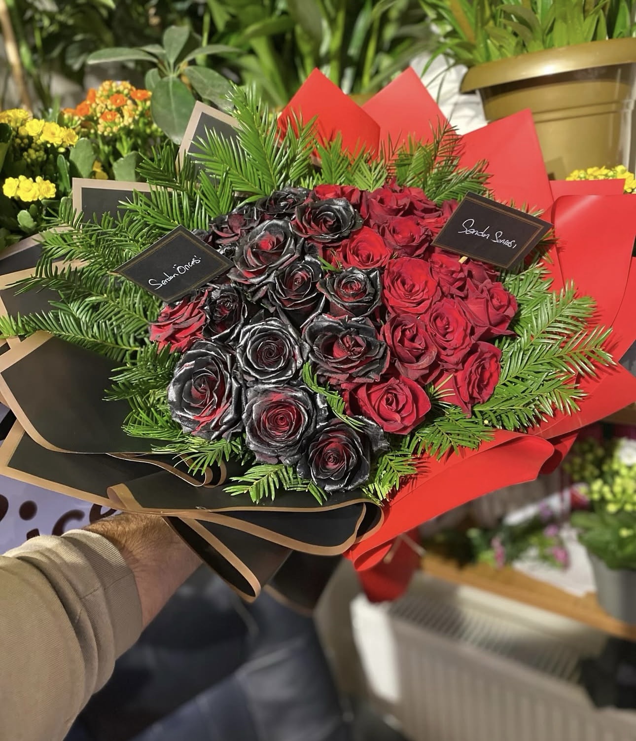 Kırmızı ekvator güller ile hazırlanmış 35 gül demeti.
